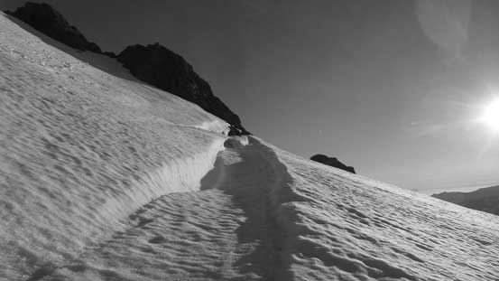 Another photo to show the completely-open bergschrund on 4th-of-July route