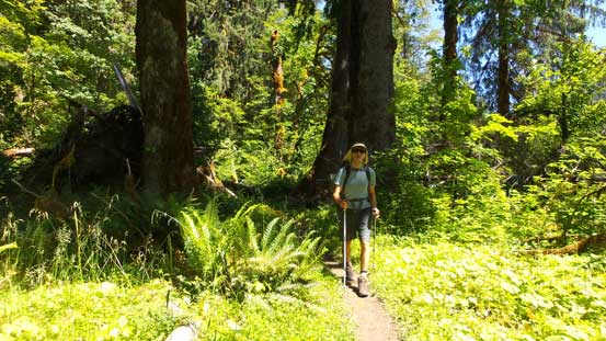 The next morning we planed to sleep in but when the brightness of the daylight arrived it’s hard to keep sleeping, so by 5 am we all woke up. We quickly broke camp and moved down the road and back to Port Angeles. After some morning routine in McDonalds and then Safeway we went to the Visitor Center. About an hour later it opened and we had no issue getting our permit. This was a surprisingly quick process and everything was set by 8:15 am. About 2 hours of driving later we arrived at Hoh River trail-head on the far west reach of Olympic National Park and then the long march began. The first 20 km (12.5 miles) down this trail had very little to document about, but it’s still worth noting that we were trekking through the Hoh Rainforest – largest temperate rainforest in Pacific NW. The trees are gigantic and the biomass are vast (we even saw a fox) and that’s not something we see everyday.