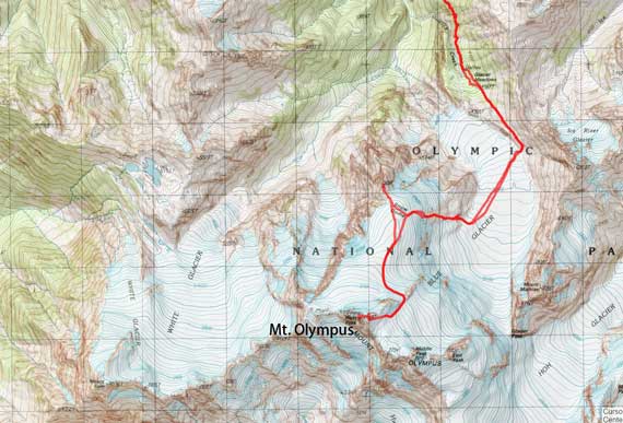 Mt. Olympus standard route via Blue Glacier. GPX DL