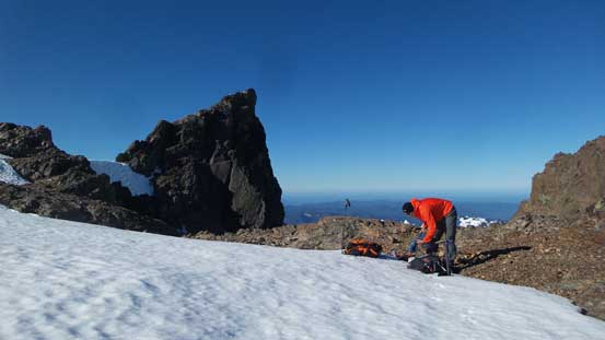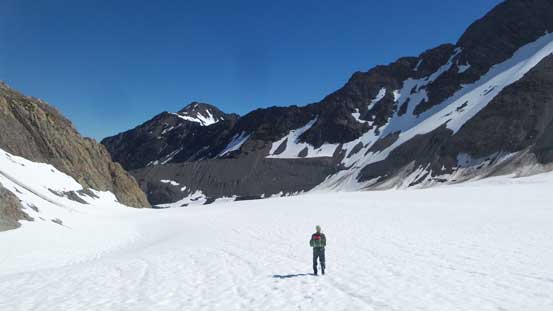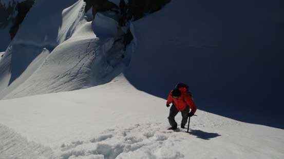 Cresting the “col”. Keep plodding until it makes sense to get onto the moraine
