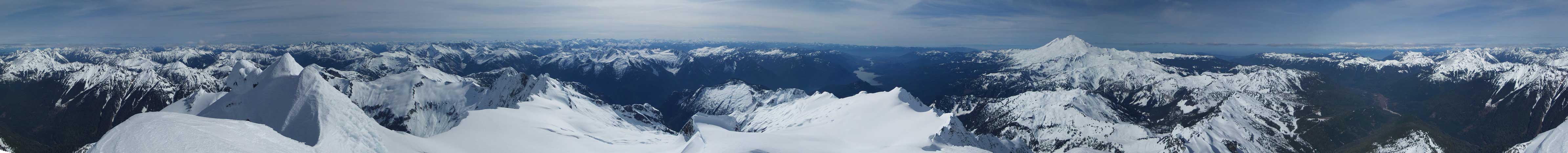 There’s not much time for me to linger on the summit other than the obligatory panorama pictures. I gingerly made my way down the exposed SE Ridge and then into the rime ice channel. That strenuous move was specially tricky to descendt as one “foot hold” had collapsed thank the the previous traffics. I had to put my weight on my ice tool and lower myself while stemming on the rime ice wall, which worked nonetheless. The rest of the down-climb following the pre-existing tracks was easy, but still required caution. Swapping crampons for snowshoes I got to enjoy a fast plunge down Sulphide Glacier but then the Hell’s Highway was still in the shade so I had to swap gears again.