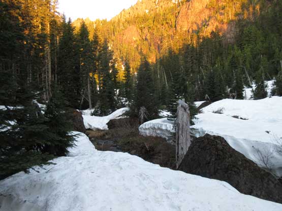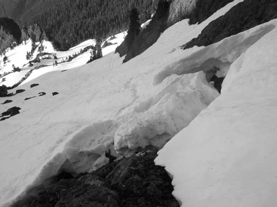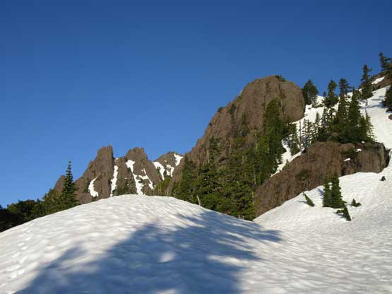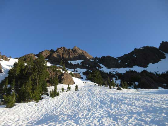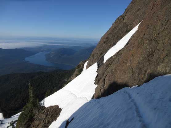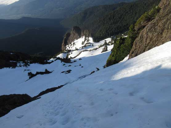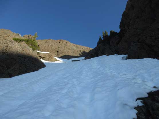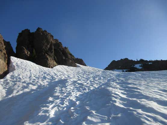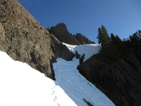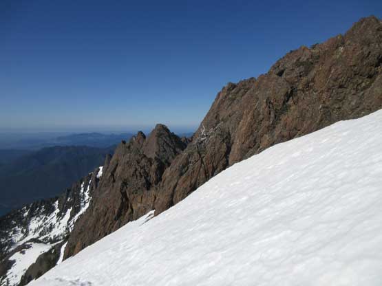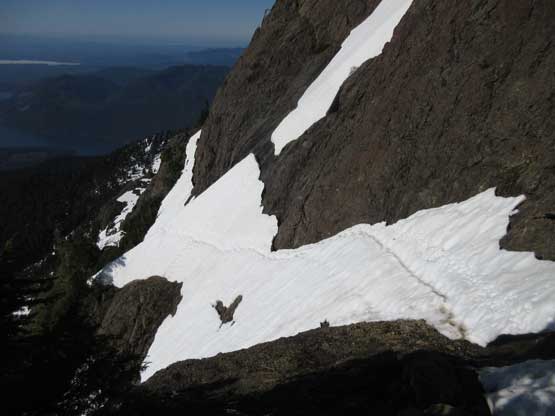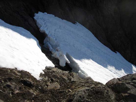 This shot shows that upper snowfield I just down-climbed