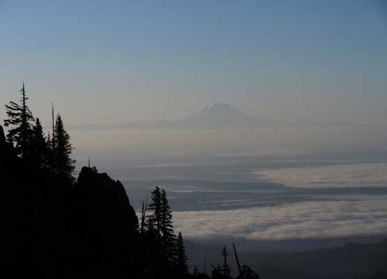 Mt. Rainier poking above the haze layer