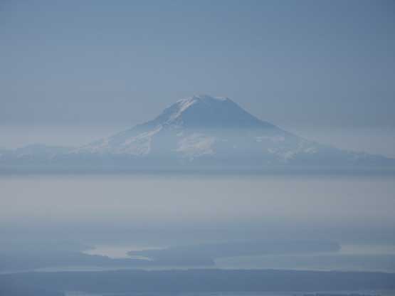 Mt. Rainier on the horizon. Note the low clouds layer