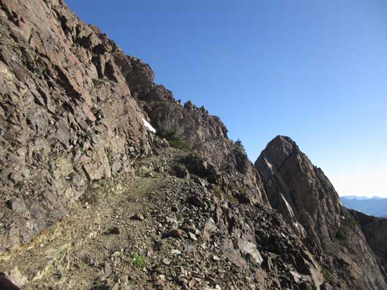 There’s an easy ledge traverse beneath the summit block.
