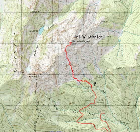 This is just a sub-summit of Mt. Washington with the eastern Olympics behind