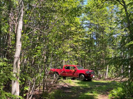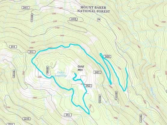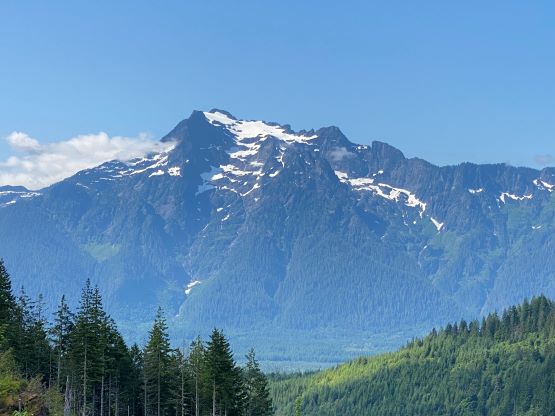 Not doing much lingering I turned the truck around and drove back down to Darrington. I thought about to just go home, but could not resist a simple drive-up bag of Gold Mountain. I was supposed to do that after scrambling White Chuck Mtn. last year, but I didn’t want to bring that up to the group. Only the selected die-hard peak-baggers would contemplate a motorized ascent of Gold Mountain and my partners on White Chuck Mtn. were not them. This time I was soloing so I didn’t have an excuse. The drive was again, longer and a little bit rougher than I thought and took over half an hour. The uppermost spur was significantly overgrown, though nothing like the FSRs in BC that I had driven over the years. The last few hundred meters could not be driven anymore, so I backed down to a place where I could turn around, and parked. The bushwhacking was not bad, but was annoying. The true summit was completely forested with no view whatsoever. Gold Mountain turned out to be one of the worst dumpster-dives I’ve done, but honestly I was expecting that and that’s why I didn’t want to bring friends up this thing. I eventually got back home at 5 pm.