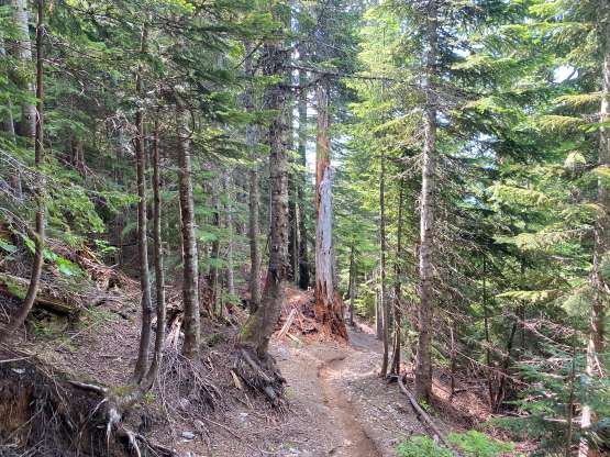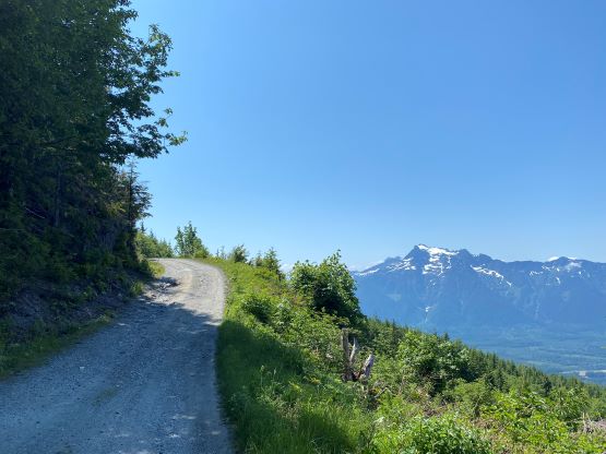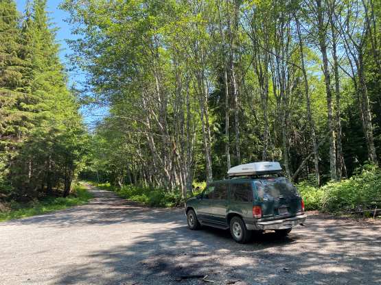 I did not leave home until 8 am in the morning as I was feeling unmotivated. I didn’t do any shopping in the previous evening so I needed one additional stop to the local Save on Food for some sandwiches. One construction costed about 20 minutes of delay near Darrington but otherwise the drive was uneventful. I then turned on the Gaia app and turned onto the well-labelled “North Mountain Road”. The initial bits were surprisingly paved. The unpaved portions were smooth, but longer than expected. It took me a long while to reach the bottom of a set of biking trails at 450 m elevation. My original plan was to park there and hike the entire length of these trails, but there were several “no hiking” signs and one truck (with bike racks) had already parked. My backup plan was to park a few switchbacks higher at 880 m (roughly two thirds of the way up) where these trails intersect the road again, and just have a short day. The drive was still a smooth sail, but was again longer than expected.