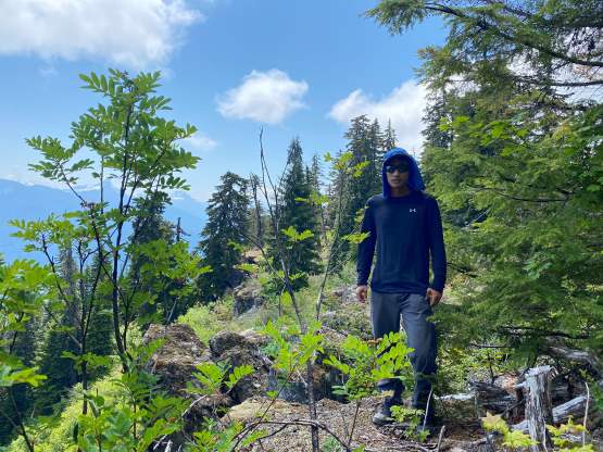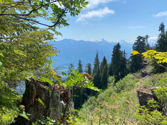 I did not leave home until 8 am in the morning as I was feeling unmotivated. I didn’t do any shopping in the previous evening so I needed one additional stop to the local Save on Food for some sandwiches. One construction costed about 20 minutes of delay near Darrington but otherwise the drive was uneventful. I then turned on the Gaia app and turned onto the well-labelled “North Mountain Road”. The initial bits were surprisingly paved. The unpaved portions were smooth, but longer than expected. It took me a long while to reach the bottom of a set of biking trails at 450 m elevation. My original plan was to park there and hike the entire length of these trails, but there were several “no hiking” signs and one truck (with bike racks) had already parked. My backup plan was to park a few switchbacks higher at 880 m (roughly two thirds of the way up) where these trails intersect the road again, and just have a short day. The drive was still a smooth sail, but was again longer than expected.