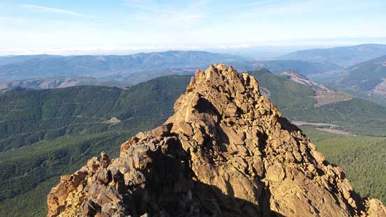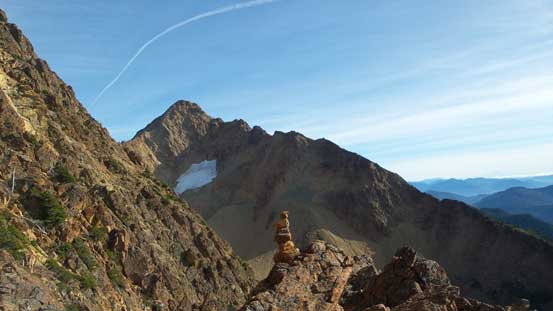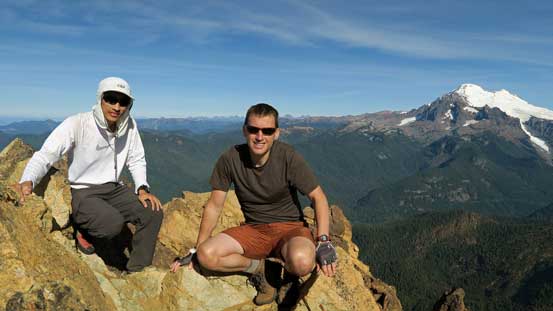 And then it’s the final summit ridge. It was also very foreshortened and seemed to drag on forever again. The view from the true summit on the far end was as expected, pretty good but not superb. More than half of the panorama was the coastal low land so there weren’t that many peaks to see from the top. The bonus for me was a glimpse of Mt. Rainier, but beast of the beasts down south by Seattle. And it was warm and windless so we took a fairly long break before committing to the descent.