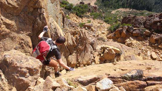 Here’s the down-sloping ledge traverse to bypass the upper wall