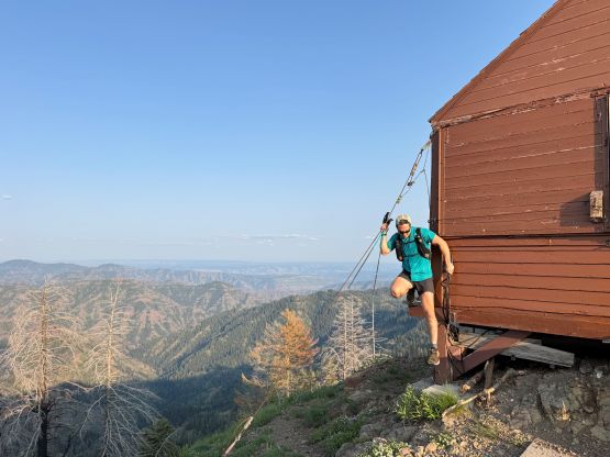 Seb dashing for the summit of Oregon Butte