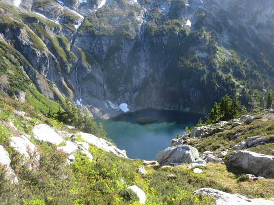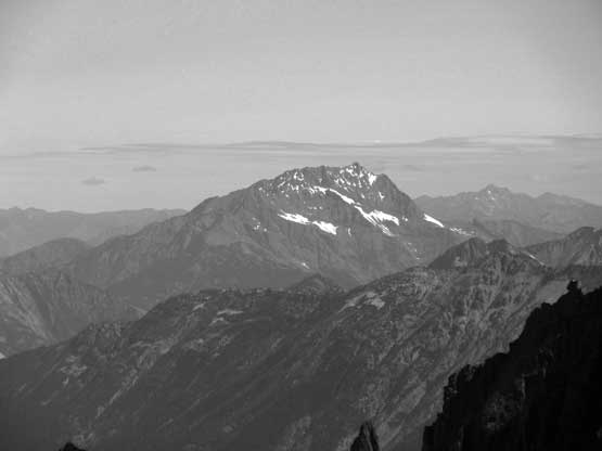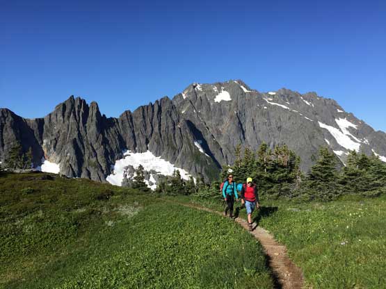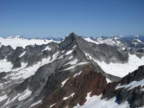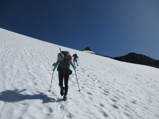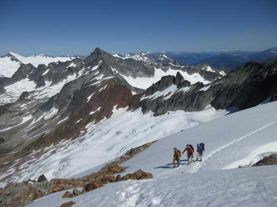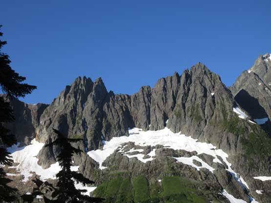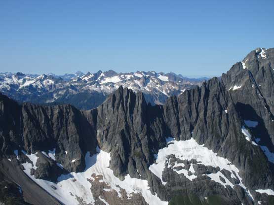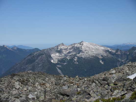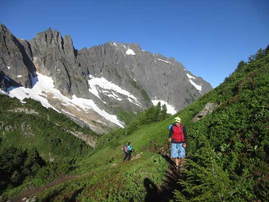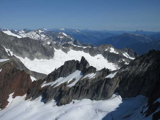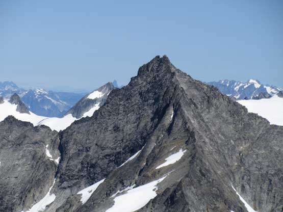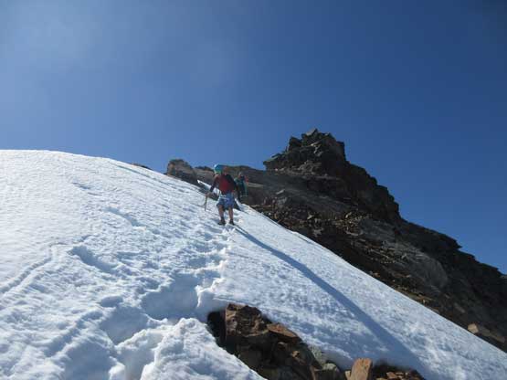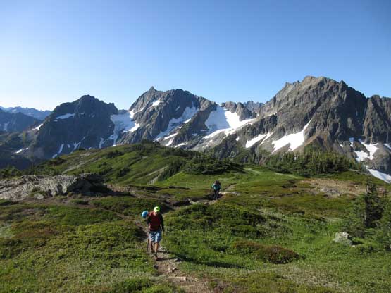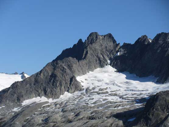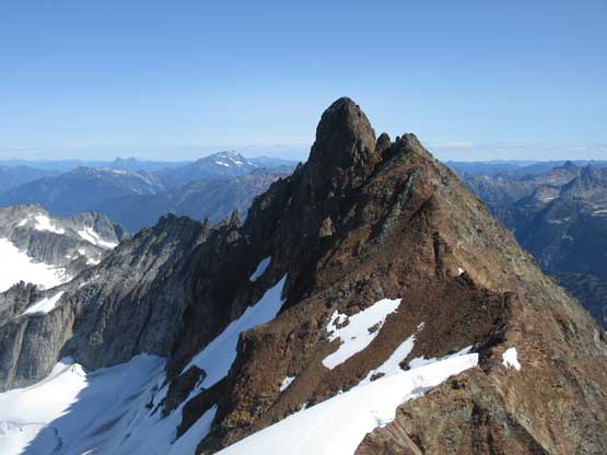 Not doing unnecessary lingering we passed a guided group of 3 climbing Sahale Peak from the north side, then continued onward towards our main objective – Boston Peak.