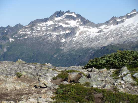 I did not take many photos on the approach to Cascade Pass because we were in a thick rainforest doing nothing but boring switchbacks. We did make good time to the pass. Then turning left onto Sahale Arm we started to be bombarded by incredible views especially looking back at the NE Buttress of Johannesburg Mountain. This is one trip that reminded me I must climb Johannesburg Mountain at some point.. The trail was in a very good shape and continued all the way into the alpine. There was a bit of talus hopping below the glacier but the route was well-marked by cairns. We loaded up the water bottles at the campsite immediately below the glacier, and took a long food break ditching unnecessary weight including trail-runners while swapping for mountaineering boots.