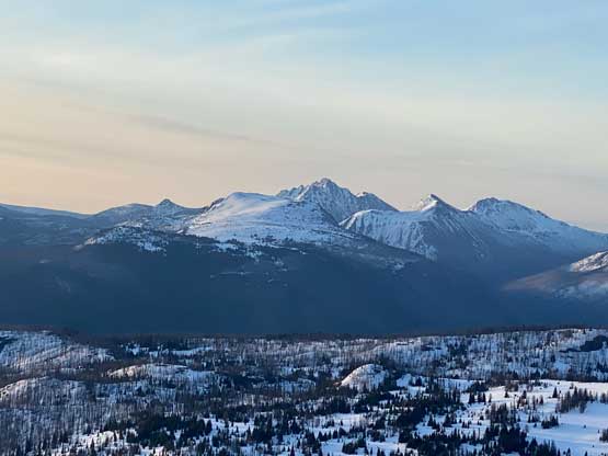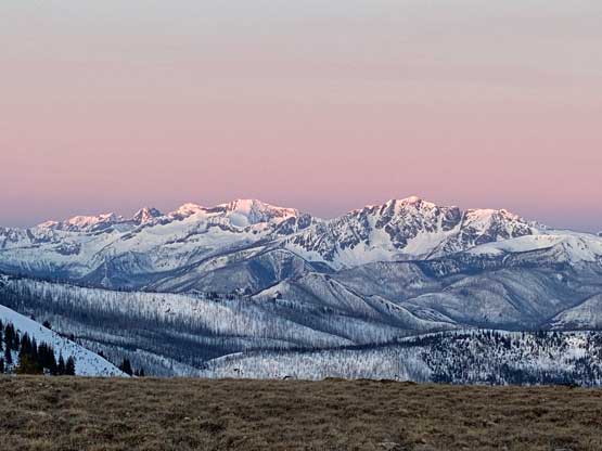 Alpenglow on Jack Mountain, Powder Mountain and Three Fools Peak