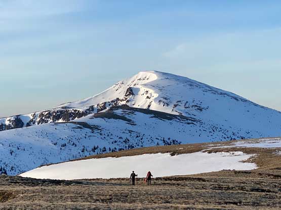 Phil and Elise plodding ahead towards Sheep Mountain