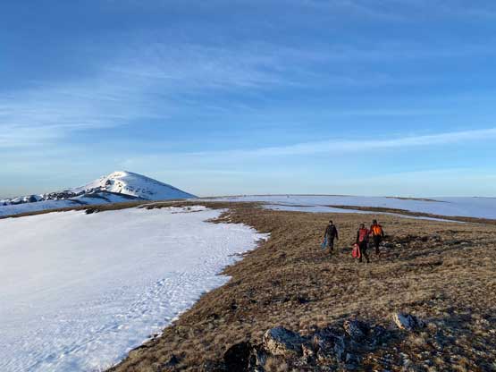 Phil, Francis and me plodding up the north ridge of “Border Lake Peak”