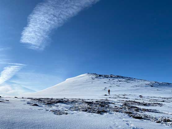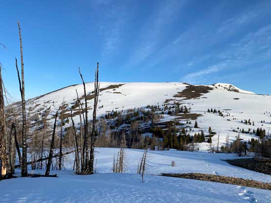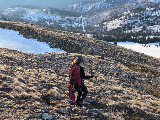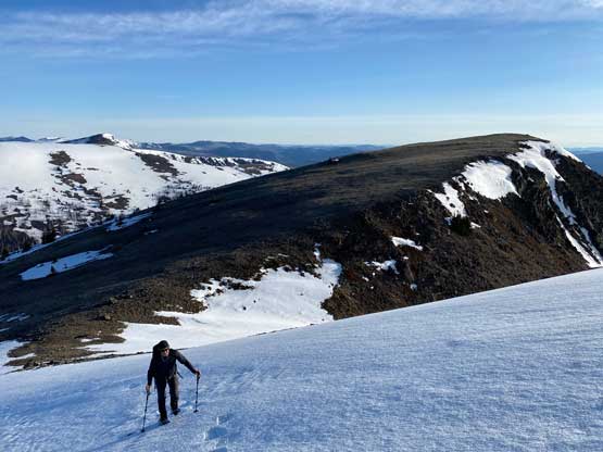 Traversing across the west side to avoid re-ascending the very summit
