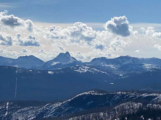 A zoomed-in view of Jack Mountain with Snowfield Peak far to the left