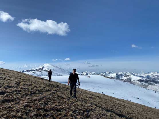 Phil plodding down the north slopes of “Border Lake Peak”