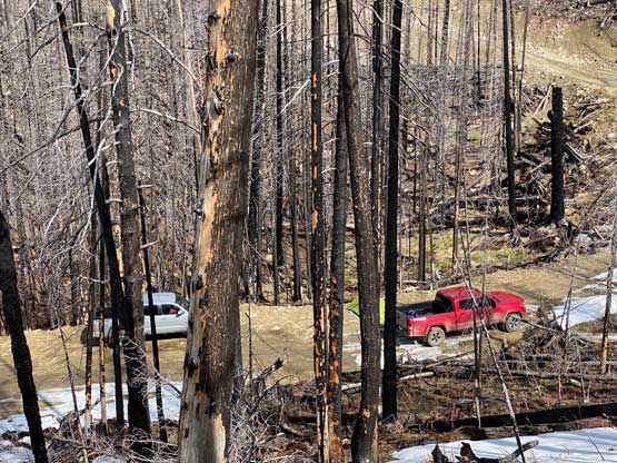 I immediately formulated a plan to follow Matt’s footsteps on the next weather window and that happened to be exactly a week later on Wednesday. My objective was absolutely dead set on Sheep Mtn. what no flexibility whatsoever as who knows how long this road will be maintained. There were already rumours that the government is trying to deactivate the logging roads in the areas around Ashnola River and this one is located in the broader vicinity. I managed to recruit a team-of-four, Elise, Phil, Francis and myself at the last minute. I did have to be back home no later than 5 pm for work, so the plan was to drive out after work on Tuesday to car-camp at the end of the logging roads to allow a proper pre-dawn start. Francis had to be in Kelowna after this trip so opted to drive out separately, which I did not mind as having two Tacos is a whole lot safer to venture that deep on backroads.