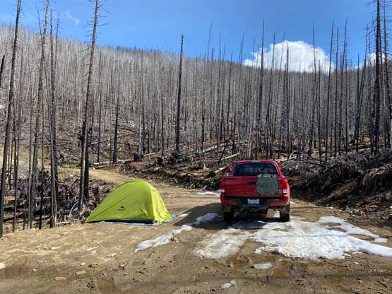 Phil’s tent and my truck at the end of the hike.