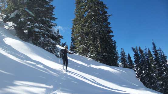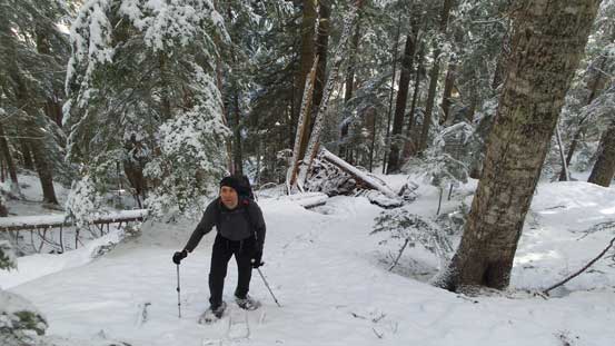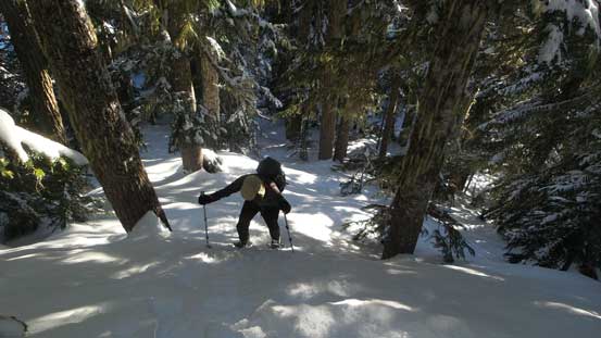 Starting the steep trail which is more like a “route”. Note the fresh snow…