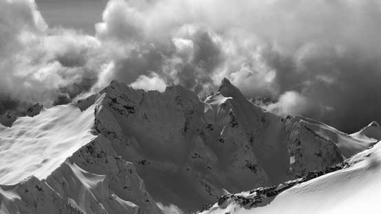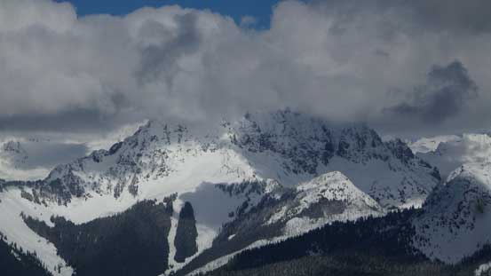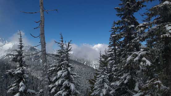 Clouds lifted up for a few seconds and I snapped this shot towards Dome Peak massif