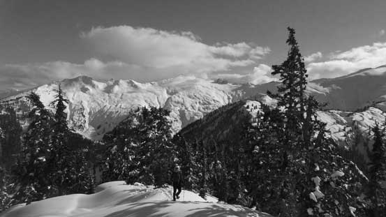 Big terrain all around us. This is looking down at Mutchler Creek drainage