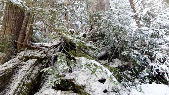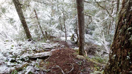 Starting the steep trail which is more like a “route”. Note the fresh snow…