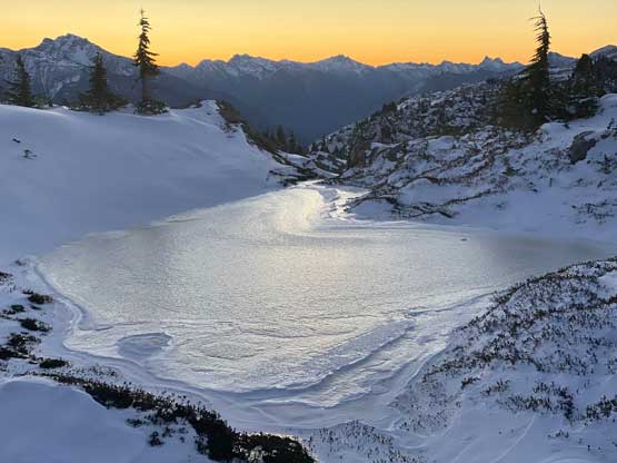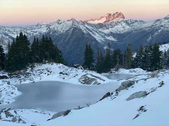 It took me a while to convince them that an all-nighter was indeed required by showing them backwards mathematics. Mel rented a Mercedes SUV on Wednesday afternoon, picked up Vlad from Richmond at 12:00 AM midnight and then me from White Rock at 12:30 am. The border and the drive was uneventful sans a speed ticket delay and we made to the trail-head at the north shore of Gorge Lake at just past 3 am.