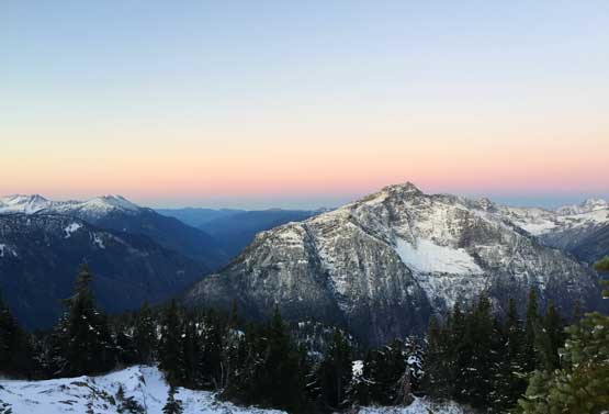 My original plan of Sourdough Mtn. was to hike the “winter route” on snowshoes in a gorgeous winter day, but I knew such bluebird weather in winter is a rare thing, so the hike didn’t happen in the last couple seasons. Then it came to October this year when a unseasonably cold winter storm dumped a foot of snow in the Cascades. The system left and a high pressure ridge kicked in granting three bluebird days but I was struggling to find a worthwhile objective. I had to be back home by mid-afternoon for work, on all three days but because of the weather and the fresh snow I wanted something with grand views. After messaging a couple friends Mel and Vlad agreed to join on Thursday. The original plan was Hidden Lake Peaks but I pulled the plug because my concern of driving on snow-covered logging roads. An ascent of Sourdough Mtn. (and the fire lookout) isn’t quite a half-day outing but I figured with an all-nighter push we could still make it happen by ascending all night and watching sunrise from the summit.