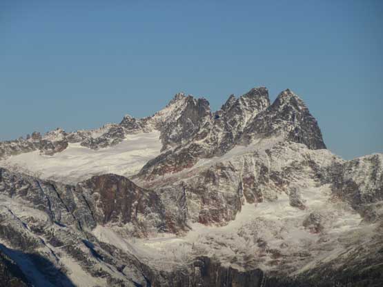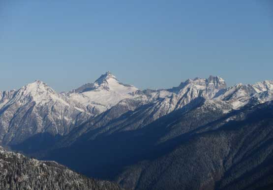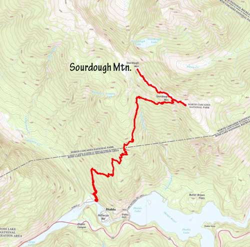 Sourdough Mtn. itself is probably not as famous as the fire lookout on its broad south-east ridge. The lookout is one of the first few built in US more than a century ago with some historical significance, and offers some of the finest views in the North Cascades, but the lookout itself isn’t on the summit of this mountain. The true summit lies about one mile to the north-west and is more of a “bump” on the long, undulating Stetattle Ridge and has a prominence of under 100 m. The ridge can be traversed on mostly open terrain with some up-and-downs from the lookout site. The hike to the lookout is strenuous with whooping one-vertical-mile of elevation gain, but because of the excellent views this hike is fairly famous in the state of Washington.