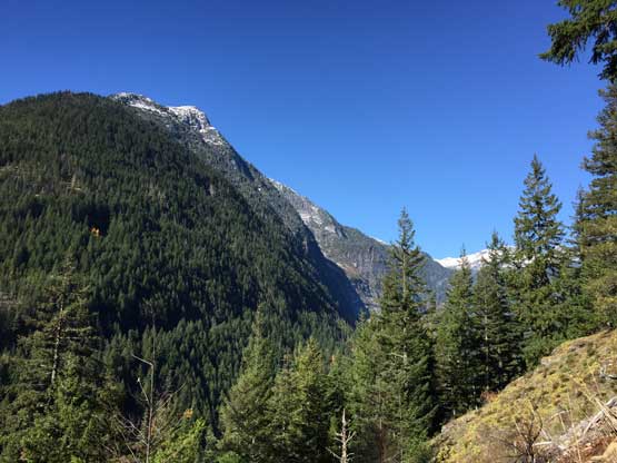 It was past 9:30 am and we had to hurry up. We made quick work down to the trail junction and then into the south side basin. The opening area with switchbacks offered excellent views of Diablo Lake with Snowfield Peak group behind as a backdrop. After that we were in the woods, and the plod seemed never-ending.. We got back to the parking lot in about 2 hours after leaving the lookout site, making a total round trip time just over 8 hours.