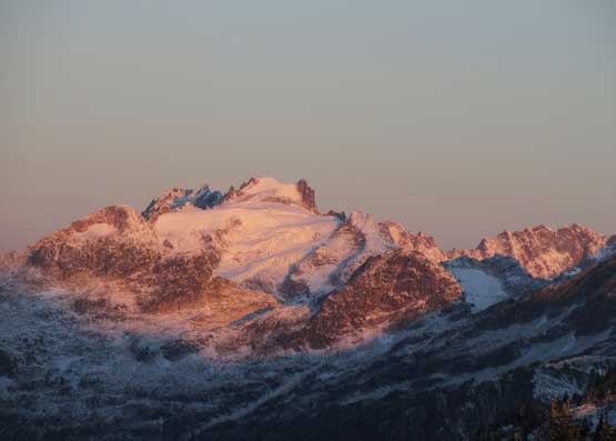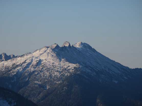 Sourdough Mtn. itself is probably not as famous as the fire lookout on its broad south-east ridge. The lookout is one of the first few built in US more than a century ago with some historical significance, and offers some of the finest views in the North Cascades, but the lookout itself isn’t on the summit of this mountain. The true summit lies about one mile to the north-west and is more of a “bump” on the long, undulating Stetattle Ridge and has a prominence of under 100 m. The ridge can be traversed on mostly open terrain with some up-and-downs from the lookout site. The hike to the lookout is strenuous with whooping one-vertical-mile of elevation gain, but because of the excellent views this hike is fairly famous in the state of Washington.