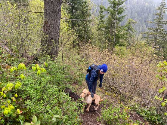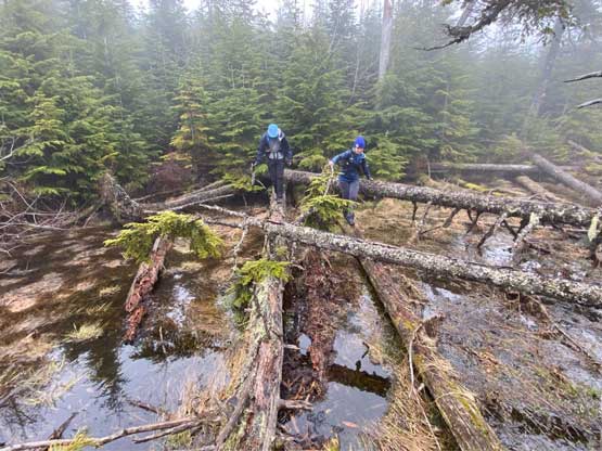 Matt then led us down a different line hoping for less intense bushwhacking but the result was rather same. We even had to cross a swampy area trying to balance on some slippery logs. The timbers were still tight. The rest of the descent on the trail was uneventful and fun and our round trip time was exactly 3 hours. Matt and I then drove to Bellingham for a much-needed pizza lunch and then went north to embrace the border traffics, which took about 40 minutes.