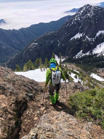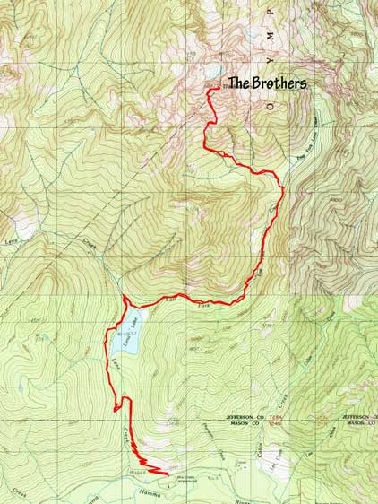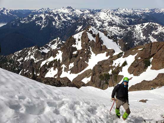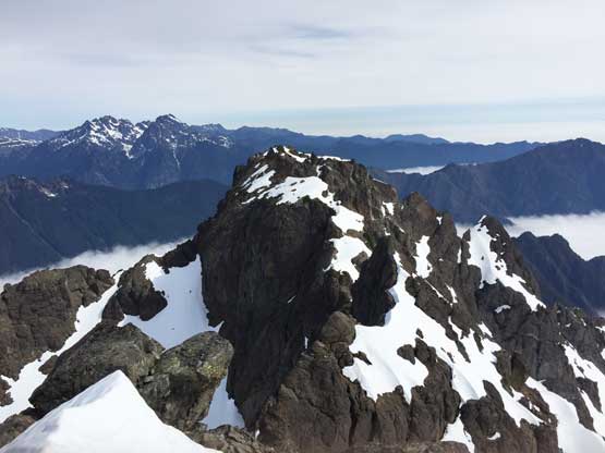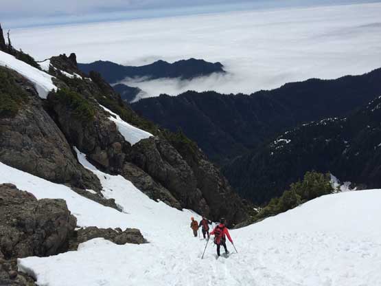The Brothers is one of the more recognizable summits that forms the “Olympics skyline” viewing from Seattle and for the sake of this reason The Brothers is also one of the more popular objectives on the peninsula. There are two summits on the massif. The easier, south summit is the true highest point while the traverse of the two summits offers a moderately technical climb. The standard route on the south summit involves snow climbing up to 40-45 degrees and short sections of 3rd class scrambling but the approach is long and tedious. Most people opt to break the ascent into two days but in this internet era, the standard for those considering themselves as “fit parties” is to push in a single day, and that’s exactly how I would do… I had done four summits in the Olympics in the past two years – Ellinor, Olympus, Washington and Angeles. The best season for The Brothers is May when avalanche danger decreases but spring snow still offers easy passages on the upper route, but this peak is also a popular chossy scramble in summer.