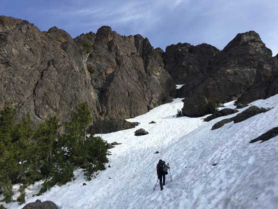 Me heading for a snow-to-rock transition, Photo by Mel O.