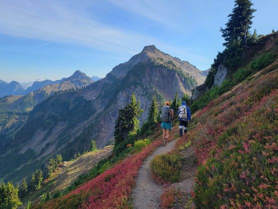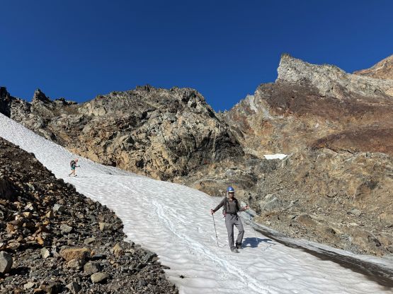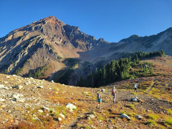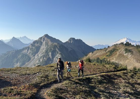 Me, Vlad and Erica traversing across High Pass, with Mt. Larrabee behind