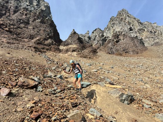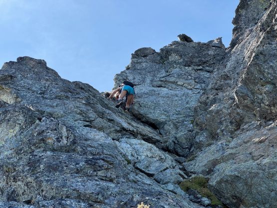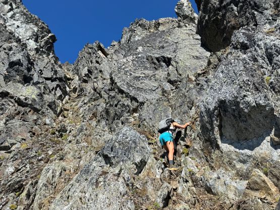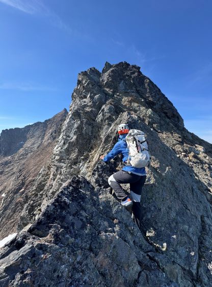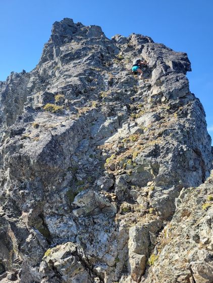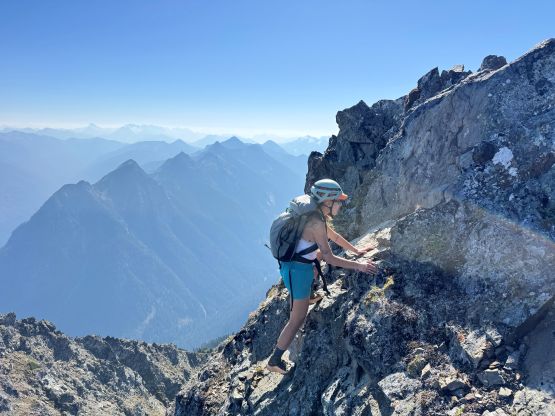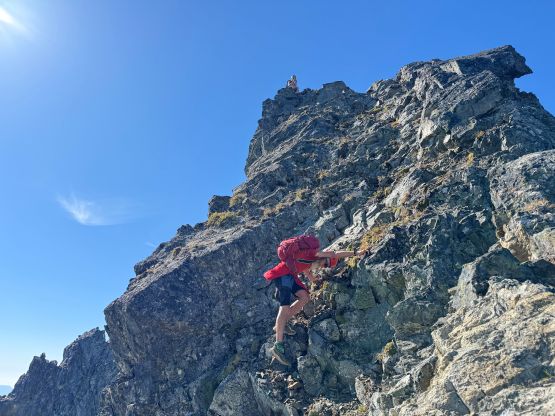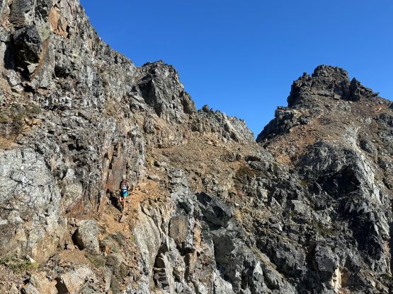 Erica nearing the summit of Peak 3 which is the highest in The Pleiades