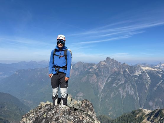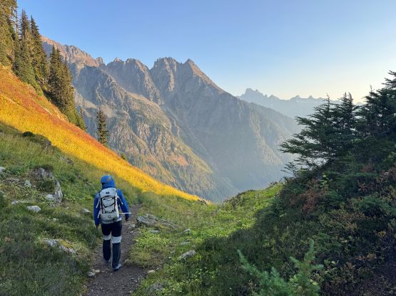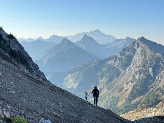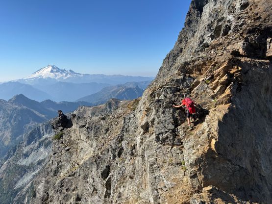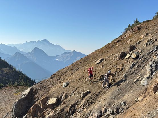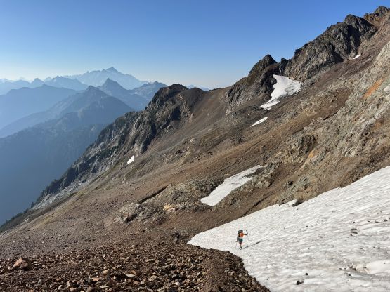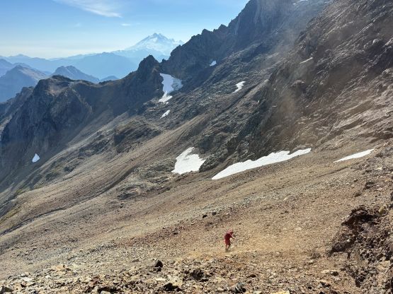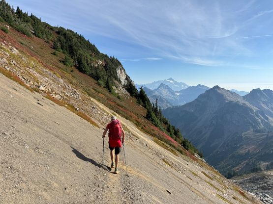 Vlad marching up with Mt. Shuksan as the backdrop