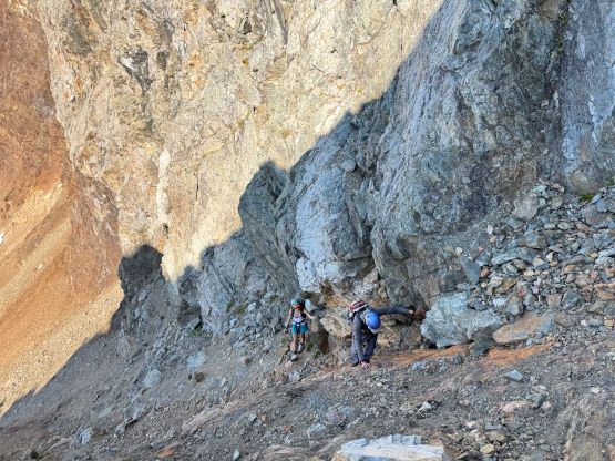 Onto the goat ledge now, time to start traversing…