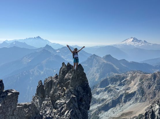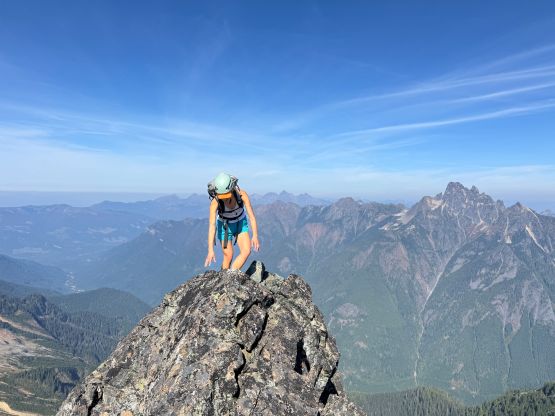 Erica balancing on the true highest point of Peak 1