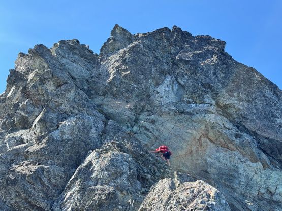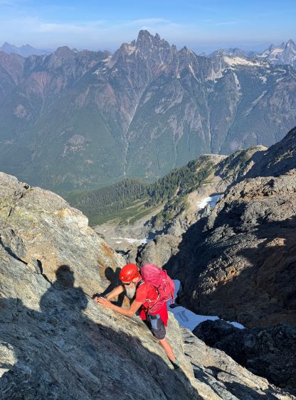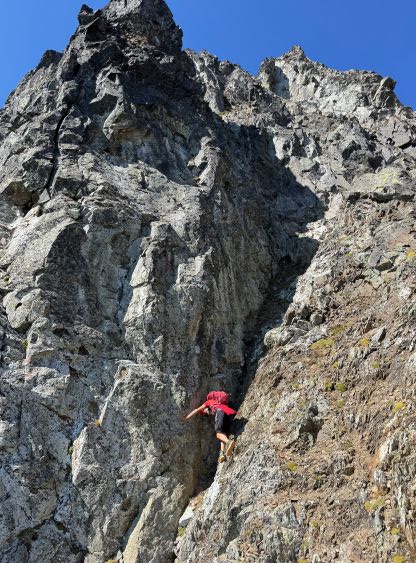 Dave scrambling out of Peak 2’s notch