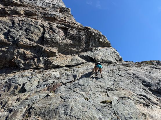 The terrain beneath the crux pitch. It was unrelentingly exposed…