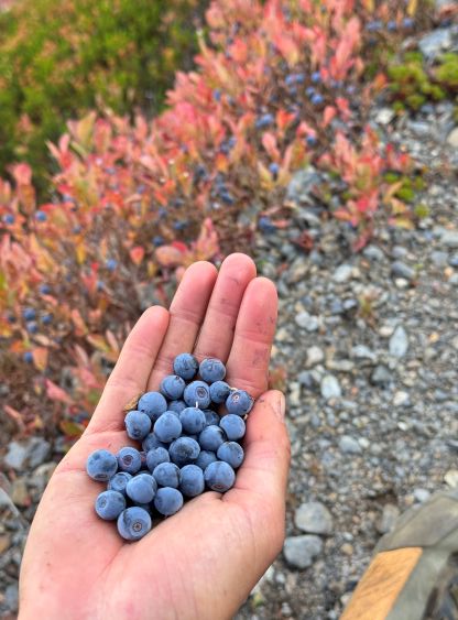 Erica picking the berries with Mt. Larrabee behind