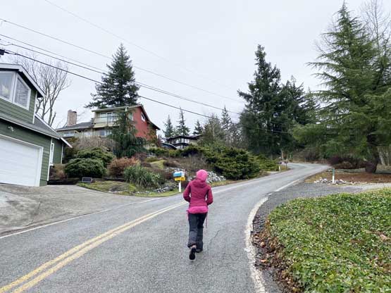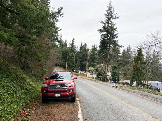 After ascending Mt. Josephine in rain earlier in the morning Masayo and I figured there’s still plenty of daylight time and none of us wanted to waste the hours. We were back in Bellingham now, but there were still a few local summits that none of us had yet bothered to bag, and Toad Mountain was the first of those. I made a plan to bag Toad Mountain first, then Squalicum Mountain and finally King Mountain and Masayo agreed. Our first dumpster-diving objective was a drive-up, so I let the Google Map app to do its navigation for us. I could have driven all the way to the top but opted to park earlier, about 100 horizontal meters from the summit. The true highest point was actually in someone’s home. I estimated the highest point was probably only 10 meters from the door and at this distance, I just had to tag it despite the associated risks. After that we took some obligatory “victory photos” and leisurely walked back to the truck.
