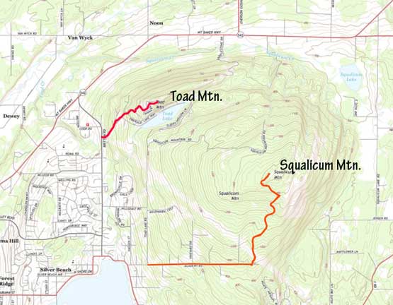 Toad Mountain is one of the handful small, but officially-named hills within the city limit of Bellingham. This particular hill including the very top is primarily used as residential area and to “tag” this summit falls into the category of dumpster-diving. If one wants, one can drive all the way to within 10 steps from the highest point, and to reach the highest point one needs to briefly trespass into someone’s home. The summit does offer a little bit of view looking north, but nothing spectacular. I was aware of this “peak” along with a few other similar ones, but had no rush in bagging them despite the short drive. If the border crossing is fluent, to reach the summit of Toad Mountain is probably no more than 40 minutes from where I live.