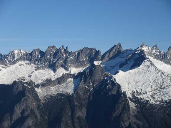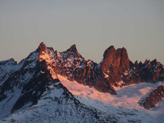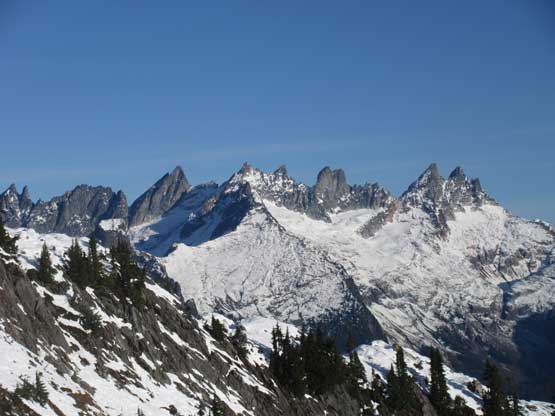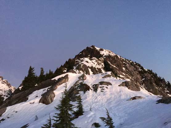 Trappers Peak is rather a small summit but offers some of the highest view-to-effort ratio in the North Cascades. It rises more than one vertical mile above the deep Skagit River valley and the village of Newhalem, but good logging roads access dispatches about 600 m elevation gain. The ascent is mostly a hike on a maintained trail with only a few mile 3rd class moves on the upper south ridge. On a clear day this summit offers finest views of the east face of Mt. Triumph and the spires in southern Picket Range. Adventurous folks can easily extend the hike by tagging the northern summit that shares about the same elevation, unofficially known as “X Mountain”, and the round trip from Trappers Peak to “X” and back to Trappers Peak shouldn’t cost much more than 1 extra hour. I had analyzed the maps of this area and decided to save Trappers Peak for a sunrise hike. The plan was to tag the summit in the early AM and rush back home for work in the PM and evening. The length of this outing suggested that “half a day” should be plenty enough, and if time’s on my side then I would bag “X Mtn.” but if not, I wasn’t going to fuss about it.