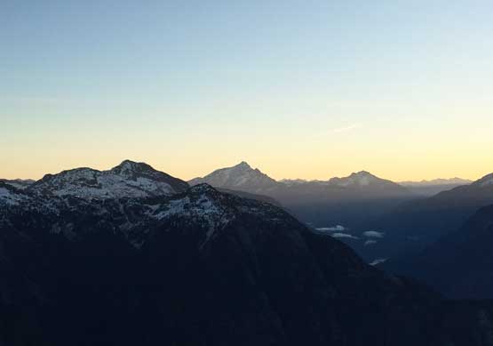 The decision was made spontaneously for this past Friday when a rare high pressure system dominated over Pacific NW but I couldn’t manage to find volunteer(s) to suffer together. I drove down south across the border at around 11 pm and made to the trail-head after 1 am. My truck was the only vehicle parked there but I noticed shattered glasses indicating previous theft activities. This meant that the thefts must have owned some sorts of 4×4 vehicles because the drive to this trail-head does involve a few stretch of steep and loose spots. I probably could, but wouldn’t want to drive a passenger car up there. Nonetheless, I turned in and slept a couple hours in my truck. The alarm went off at 4:30 am and then I took my time cooking spicy ramen for breakfast before starting the plod.